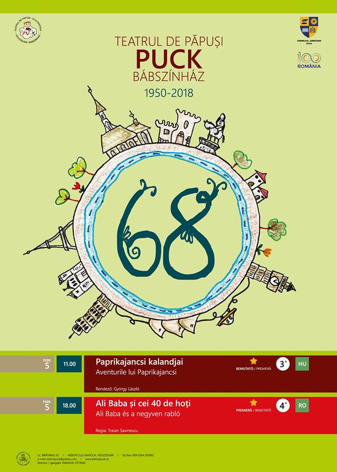 Teatrul de Păpuși „Puck” invită clujenii de toate vârstele, și nu numai, luni, 5 februarie 2018, să ia parte la evenimentele ce vor marca împlinirea a 68 de ani de la înființare.