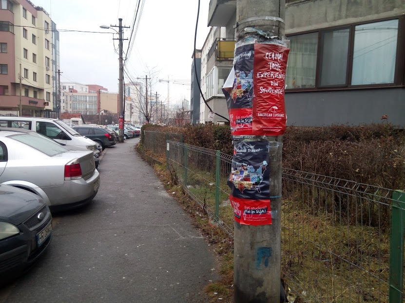 Pe strada Alexandru Vaiva Voievod stâlpii au ajuns să fie efectiv îmbrăcați de afișe, ca nu cumva să le fie frig în această iarnă.
