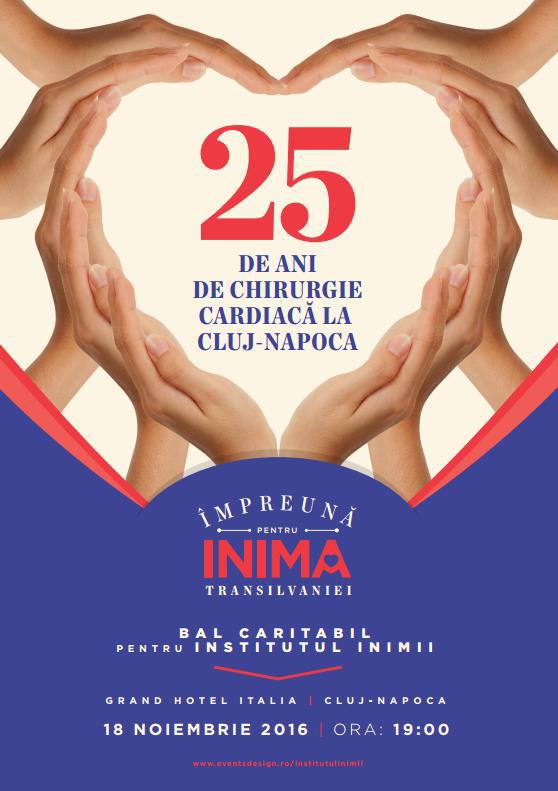 Asociația „Inima Transilvaniei” Cluj-Napoca, alături de Institutul Inimii „Niculae Stăncioiu”, revine și în acest an cu o nouă ediție, cea de a III-a, a balului caritabil „Împreună pentru Inima Transilvaniei”. Evenimentul va avea loc pe 18 noiembrie, începând cu ora 19:00, la Grand Hotel Italia, Cluj-Napoca.