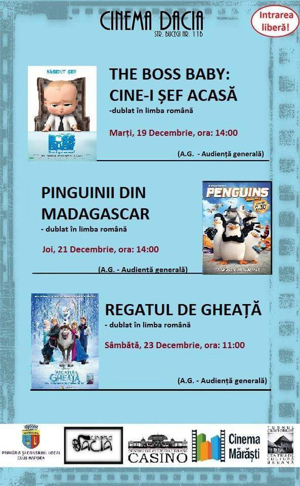 Cinematograful Dacia din cartierul Mănăștur va așteaptă la filme cu intrare liberă în această săptămână, după următorul program: