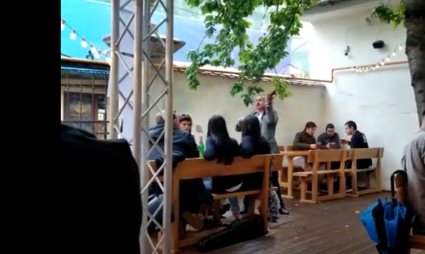 Celebrul muzicant a oferit în această după amiază un recital pentru un grup de tineri de pe o terasă din Piața Muzeului, iar la final a fost răsplătit și cu câțiva lei pentru „dedicație”.