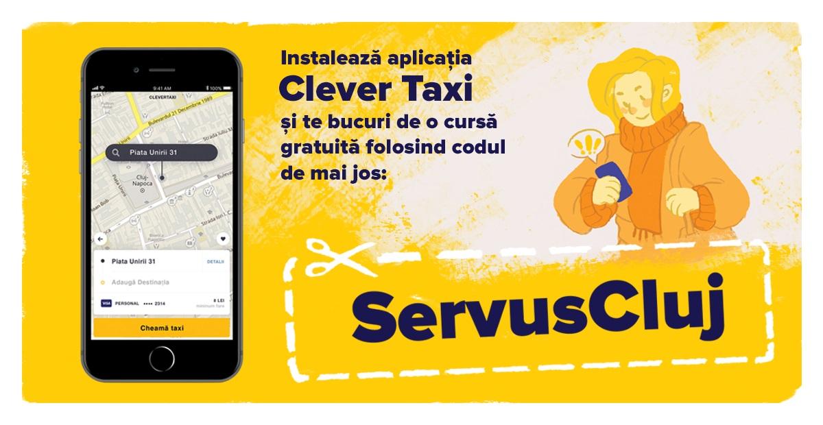 Cadoul aniversar se adresează oricărui utilizator al aplicației care are o metodă de plată cu cardul afiliată contului. Pentru a beneficia de o cursă gratuită, utilizatorii aplicației trebuie să adauge în secțiunea Metode de plată – Voucher – codul ServusCluj. Cursele gratuite sunt oferite în limita a 15 lei, iar codul poate fi folosit de astăzi până pe 15 februarie. Șoferii nu trebuie să se îngrijoreze, pentru că toate cursele sunt decontate de Clever Taxi, iar contravaloarea lor ajunge în contul lor de acceptator de plată în aplicație, din aplicația Clever Taxi Driver.