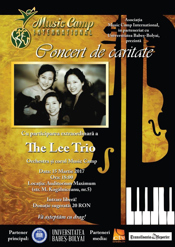 Concertul va fi susținut de The Lee Trio – ansamblu cameral recunoscut la nivel mondial. Un moment special va fi oferit de piesele interpretate de către copiii din proiectul Tabăra de incluziune din Cluj, organizată de Music Camp International. Concertul va avea loc în sala Auditorium Maximum a UBB, de la ora 18.