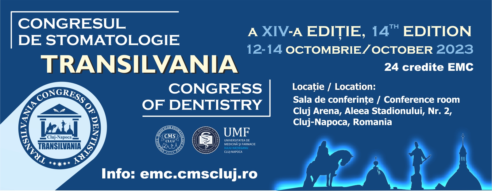 Cea de-a 14-a ediție a Congresului de Stomatologie Transilvania va avea loc la mijlocul lunii vitoare, în perioada 12-14 octombrie 2023, la Cluj-Napoca.