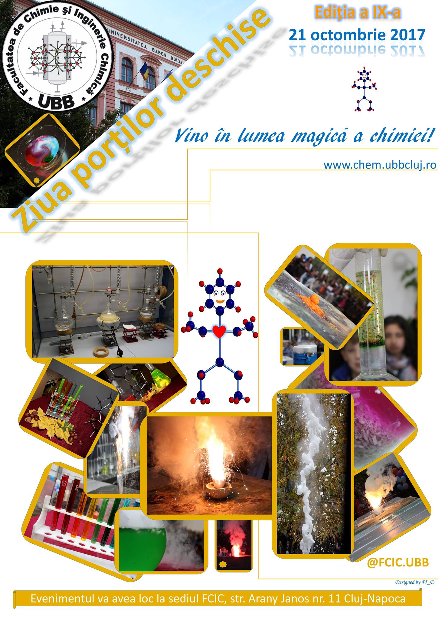 Facultatea de Chimie și Inginerie Chimică din cadrul Universității Babeș-Bolyai organizează sâmbătă, 21 octombrie 2017, cea de-a IX-a ediție a Zilei Porților Deschise.