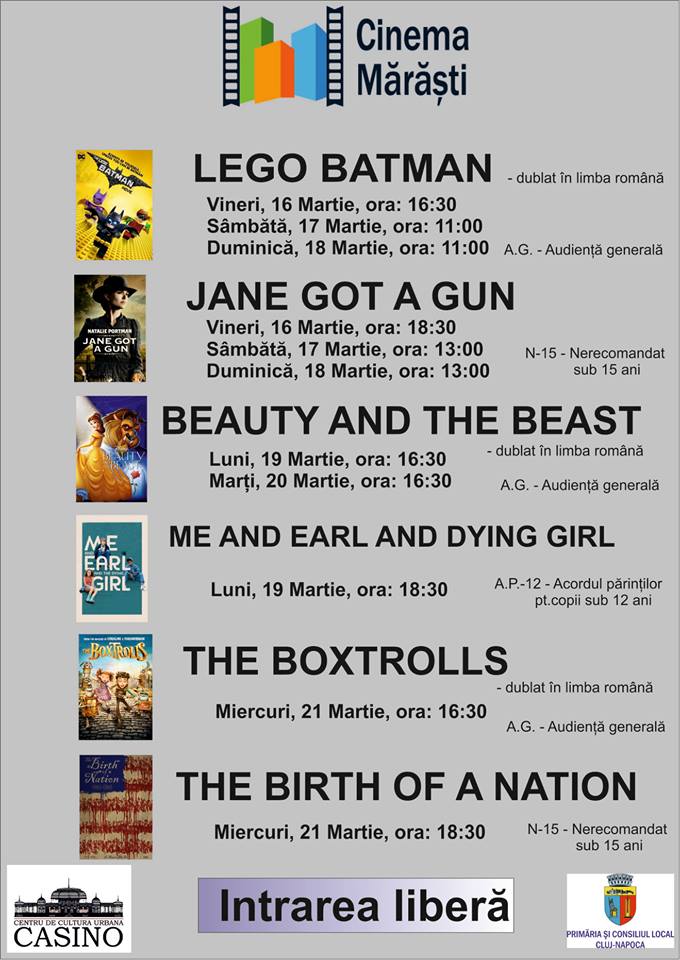 Cinematograful Mărăşti îi aşteaptă pe clujeni la începutul săptămânii vitoare cu filme captivante pentru toate vârstele, după următorul program.