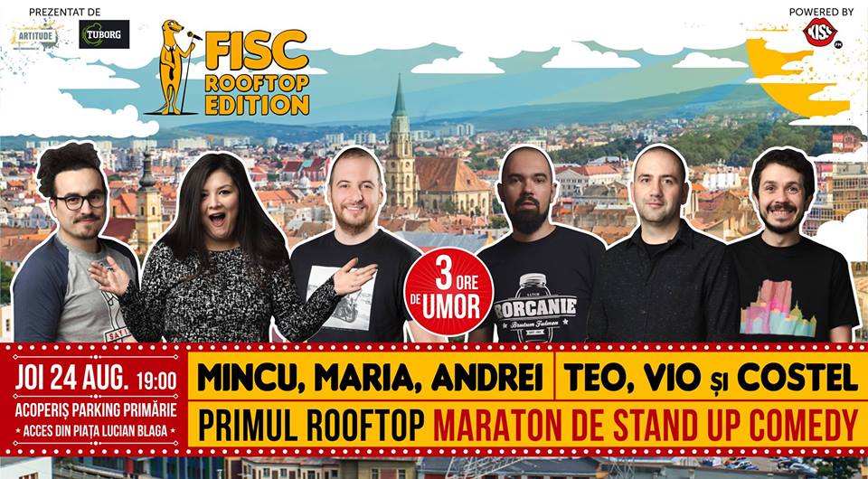 Joi, 24 august, începând cu ora 19:00, acoperişul parking-ului primăriei clujene va fi gazda unui maraton de trei ore de stand-up comedy, avându-i ca invitaţi pe cei mai în vogă comedianţi români.