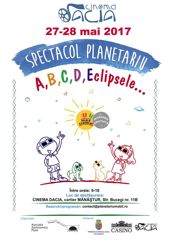 O serie de spectacole interactive de planetariu despre formarea eclipselor și ciclul anotimpurilor va avea loc la Cluj, în 27 și 28 mai 2017.