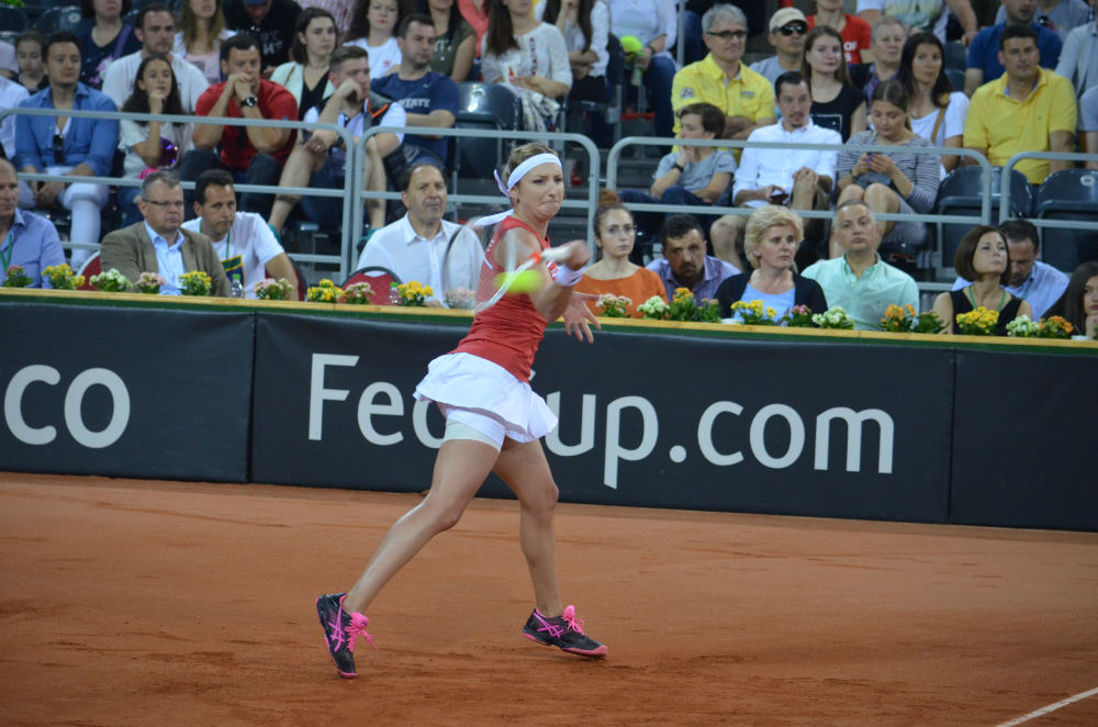 Irina Begu a câştigat meciul al doilea al confruntării dintre România şi Elveţia, învingând-o în două seturi pe Timea Bacsinszky, scor 6-4 / 6-1, într-o o oră şi 18 minute de joc.