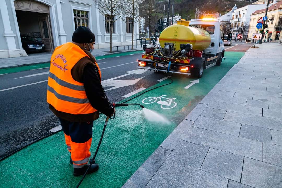 Companiile de salubritate ale Clujului au început să desfășoare acțiuni de spălare cu detergent a străzilor atât in centrul orașului, cât și în cartiere.