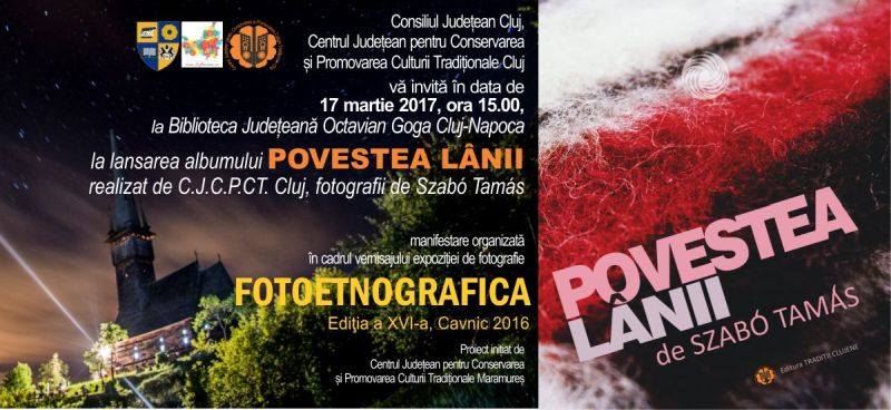 Centrul Județean pentru Conservarea și Promovarea Culturii Tradiționale Cluj invită publicul interesat la evenimentul de lansare a albumului „Povestea lânii”. Manifestarea va avea loc vineri, 17 martie 2017, începând cu ora 15:00, în holul Bibliotecii Județene „Octavian Goga” Cluj, cu prilejul vernisajului expoziției „Fotoetnografica”.