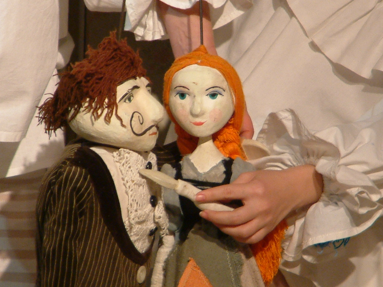 marionetele și actorii jucând împreună pe scenă. Inserțiile din Commedia dell’Arte dau o notă comică întregii povești, iar ilustrația muzicală cuprinde pasaje clasice și preclasice, interpretate live de actorii păpușari.