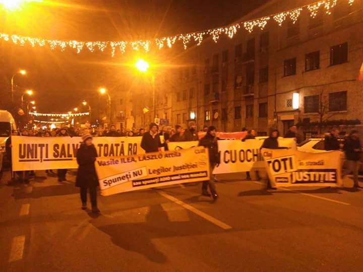 Duminică, 17 decembrie 2017, aproximativ 15.000 de clujeni au ieșit în stradă la protestul împotriva modificării legilor justiției şi a-şi striga nemulţumirile despre modul de guvernare al coaliţiei PSD+ALDE.