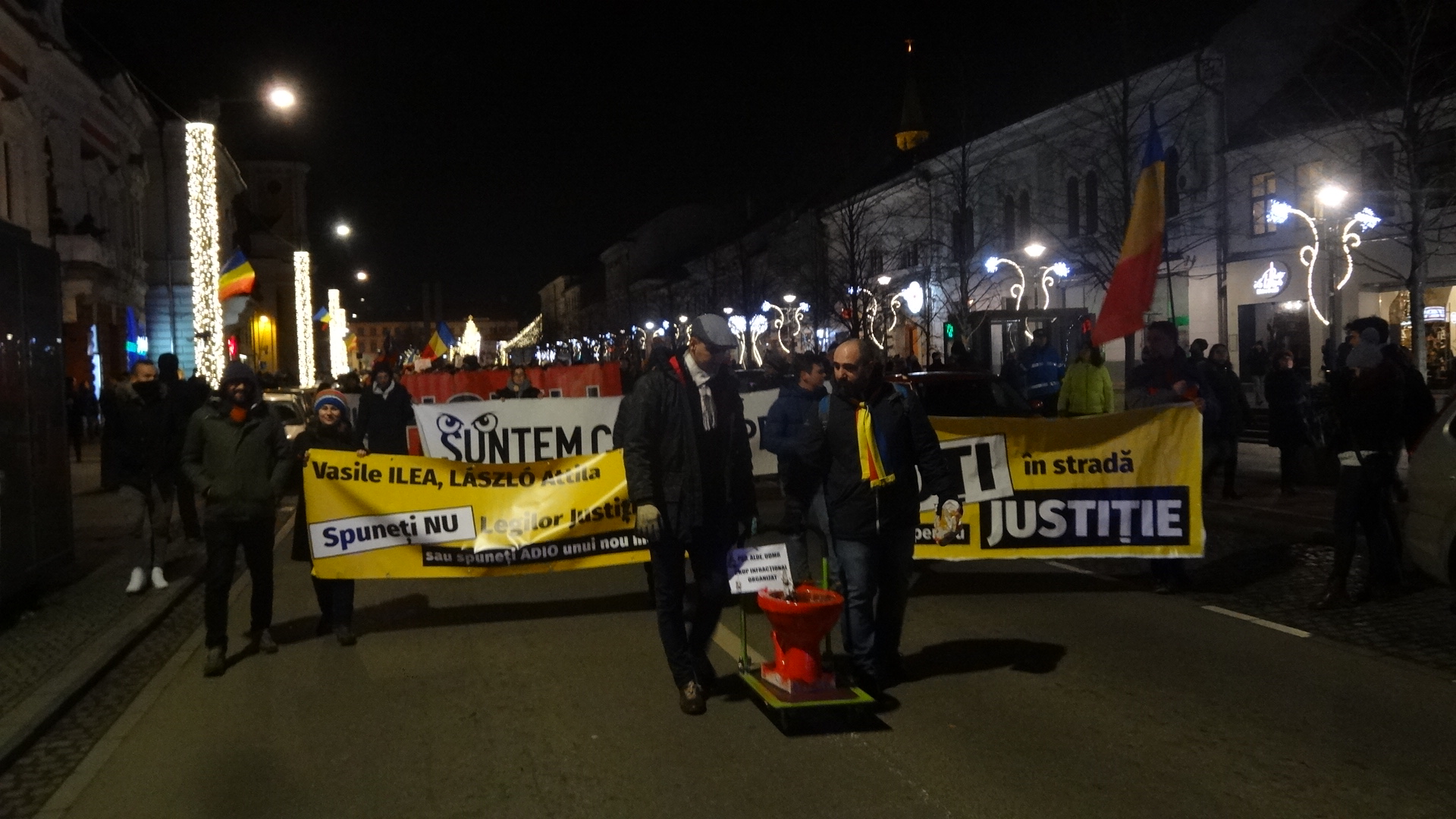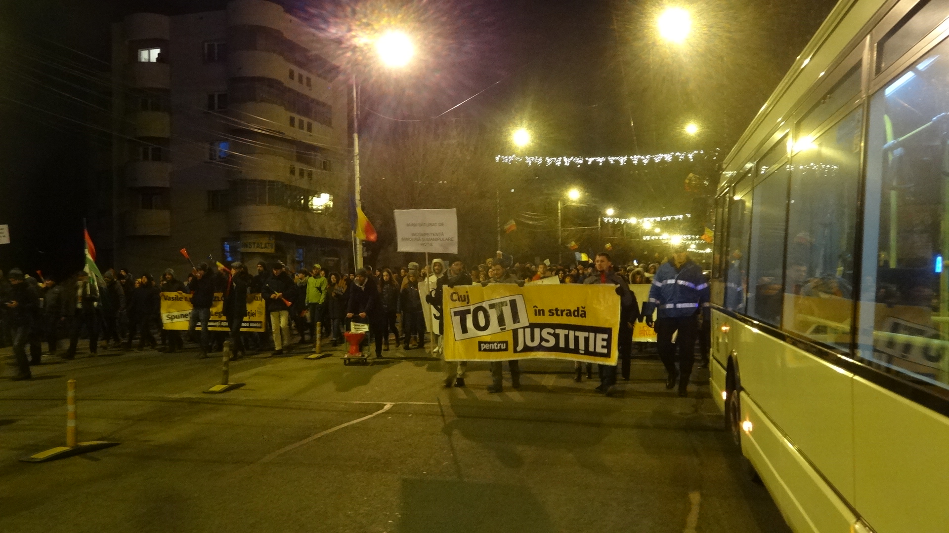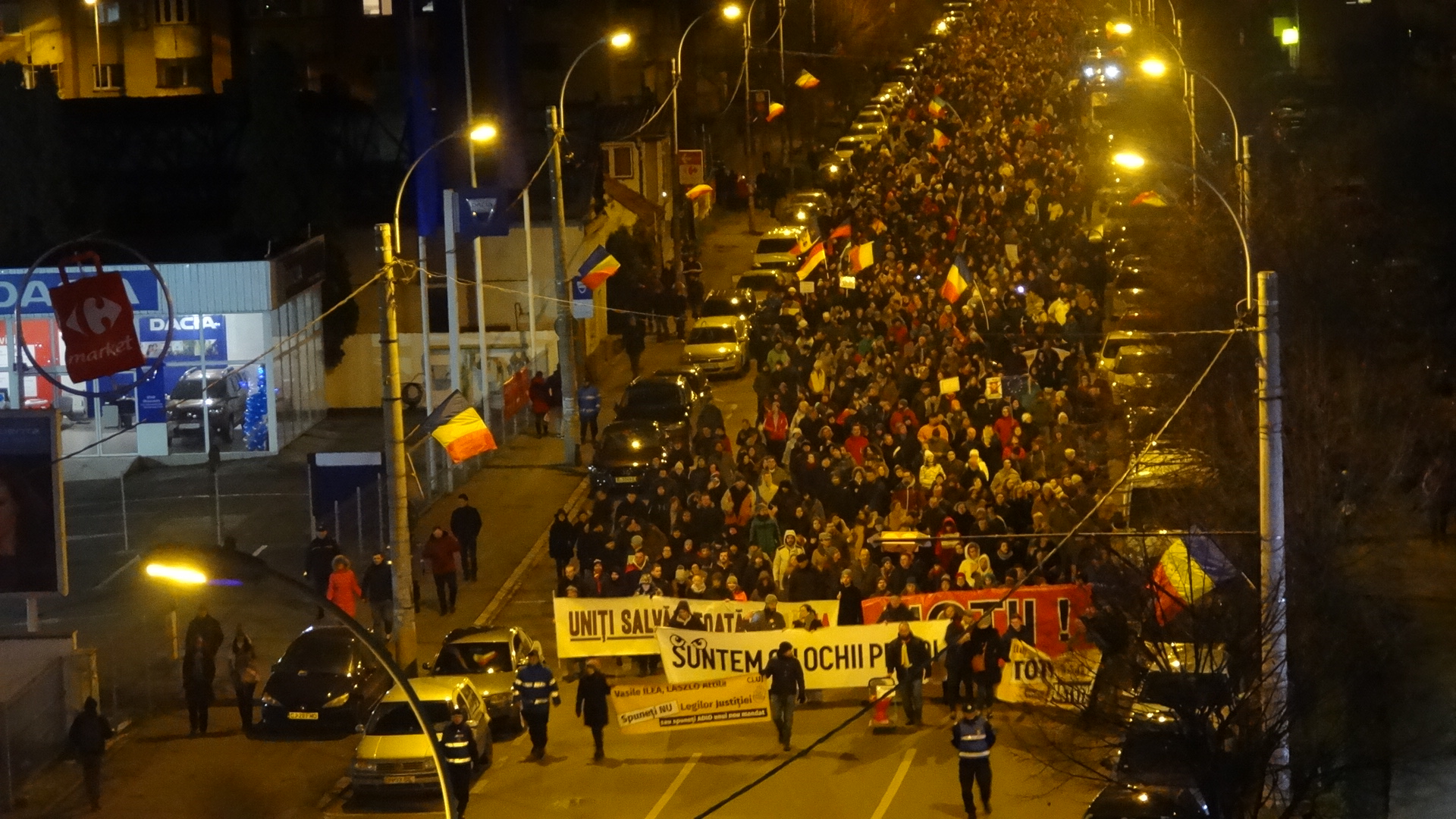 La ora 19:00 s-a plecat în tradiţionalul marş prin centrul oraşului, care a ajuns până în Gheorgheni, pe traseul: Eroilor – Dorobanților – Str. Teodor Mihali – Titulescu – P-ta Cipariu – B-dul 21 Decembrie – Piața Unirii, iar numărul protestatarilor a ajuns chiar şi la 15.000.