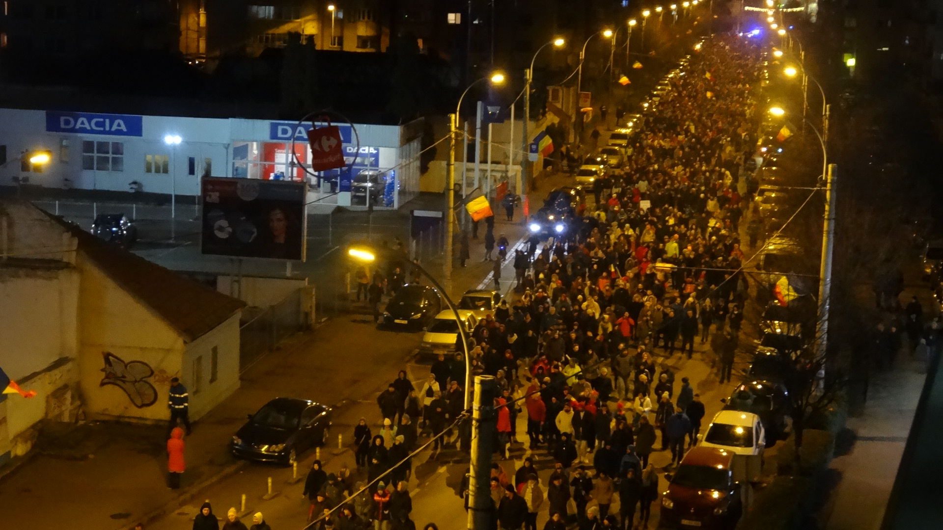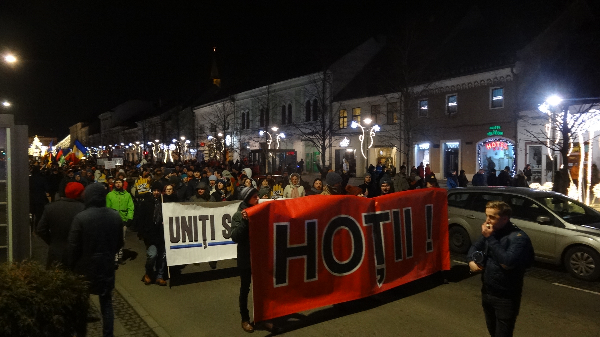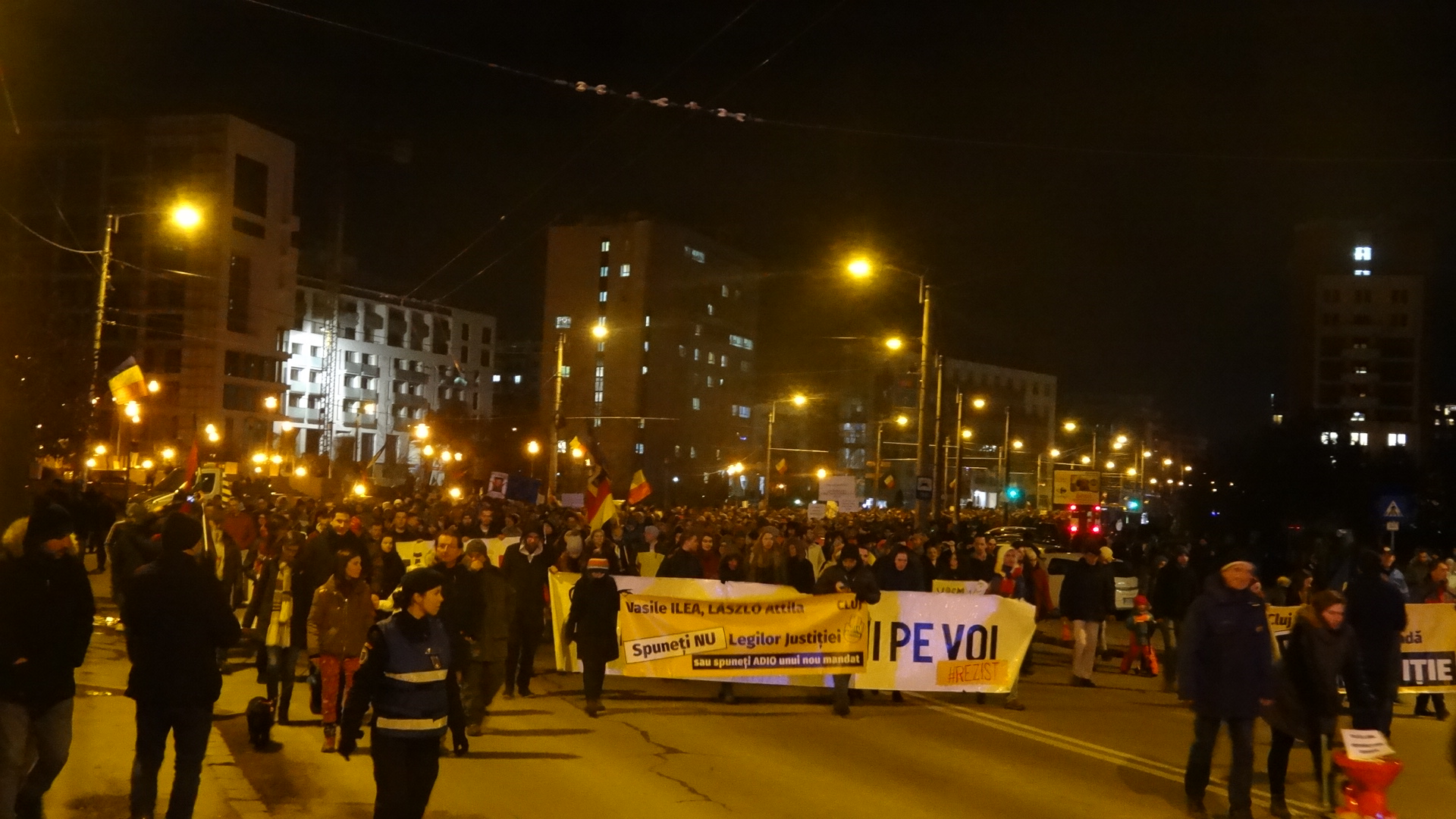 La ora 19:00 s-a plecat în tradiţionalul marş prin centrul oraşului, care a ajuns până în Gheorgheni, pe traseul: Eroilor – Dorobanților – Str. Teodor Mihali – Titulescu – P-ta Cipariu – B-dul 21 Decembrie – Piața Unirii, iar numărul protestatarilor a ajuns chiar şi la 15.000.