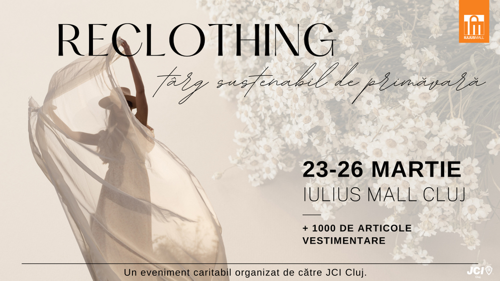 Târgul ReClothing, organizat de JCI în parteneriat cu Iulius Mall Cluj, a ajuns la a șaptea ediție. În cadrul primelor șase ediții, voluntarii JCI Cluj au colectat aproape 3 tone de haine, au salvat mii de articole vestimentare care altfel ar fi ajuns la gunoi și au strâns aproape 10.000 de euro pe care i-au investit în proiecte educaționale, între care un hub dedicat copiilor ucraineni, dotarea unor școli din mediul rural și campanii umanitare de sărbători.