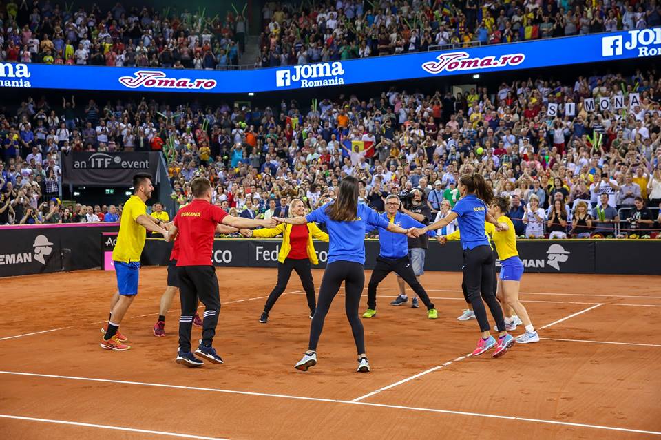 Organizatorii au oferit şi un moment festiv la final cu o ploaie de confetti peste echipa de Fed Cup a României pentru a marca momentul calificării în prima Grupă Mondială.