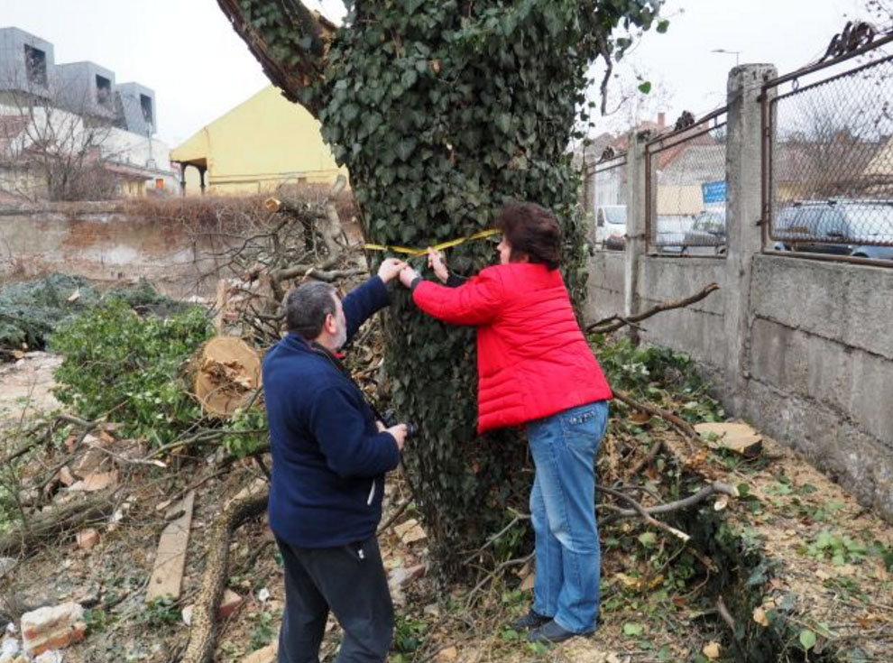 Locuitorii din vecinatatea imobilului au ajuns la capatul rabdarilor si sunt decisi sa sesizeze institutiile statului privind distrugerea acestui teren pe care au crescut copaci seculari vechi de sute de ani, intre care si cel mai bătrân salcâm japonez din Transilvania, despre care se spune că ar fi avut aproape 200 de ani, insa din el a mai rămas doar un ciot.