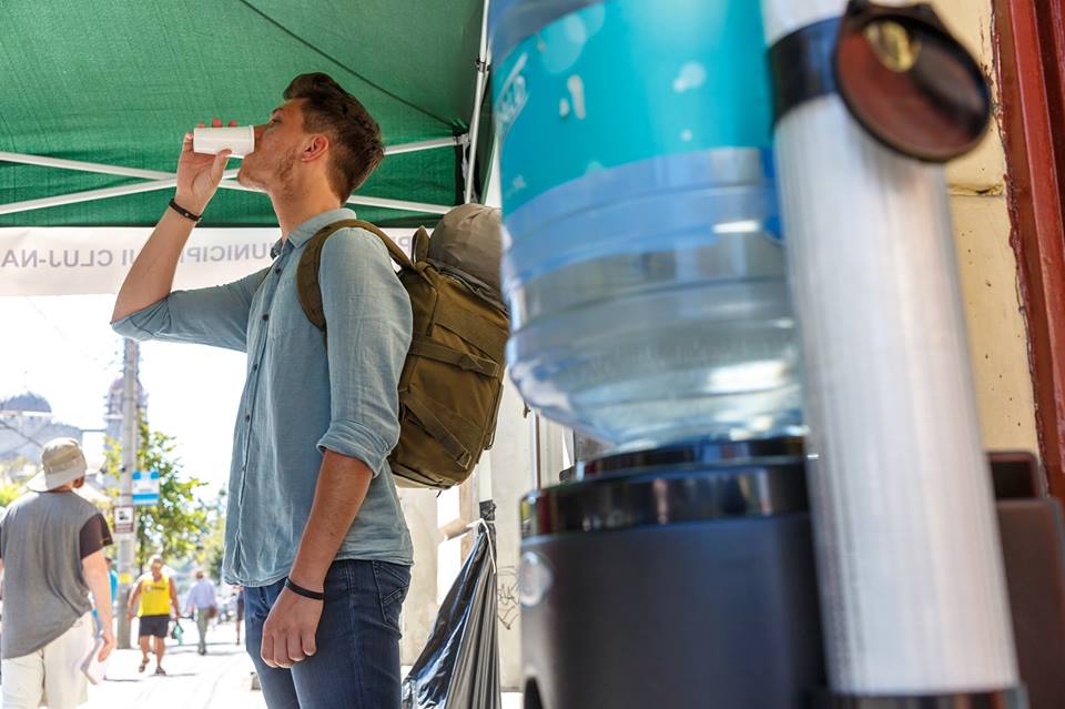 Primăria Cluj-Napoca a amenajat în oras puncte de distribuire a apei potabile pentru a veni în sprijinul clujenilor pe durata caniculei.