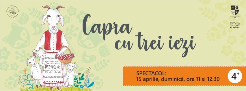 Duminică, 15 aprilie, de la orele 11 și 12.30, micii spectatori sunt așteptați la spectacolul „Capra cu trei iezi”, după vestita poveste cu același nume a lui Ion Creangă. În viziunea regizorală a Doinei Dejica acest spectacol, montat la paravan, face apel la sentimente reale, la situaţii de viaţă, la tipuri de caractere, formând astfel un bagaj emoţional şi raţional cu care copilul rămâne după ieşirea din sala de spectacol. Experienţa de o viaţă pe scena teatrului de păpuşi a doamnei Doina Dejica, a scenografului Epaminonda Tiotiu si mânuirea păpuşilor bi-ba-boo, interpretarea actorilor, alături de muzica tradiţională, alcătuiesc o reprezentaţie clasică valoroasă, care se joacă pe scena Teatrului Puck din anul 1999.