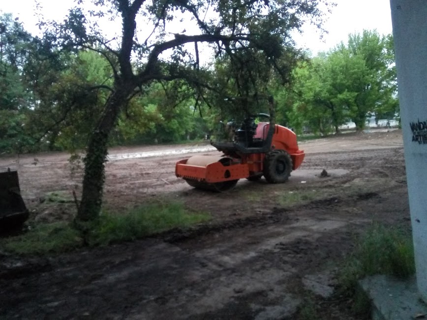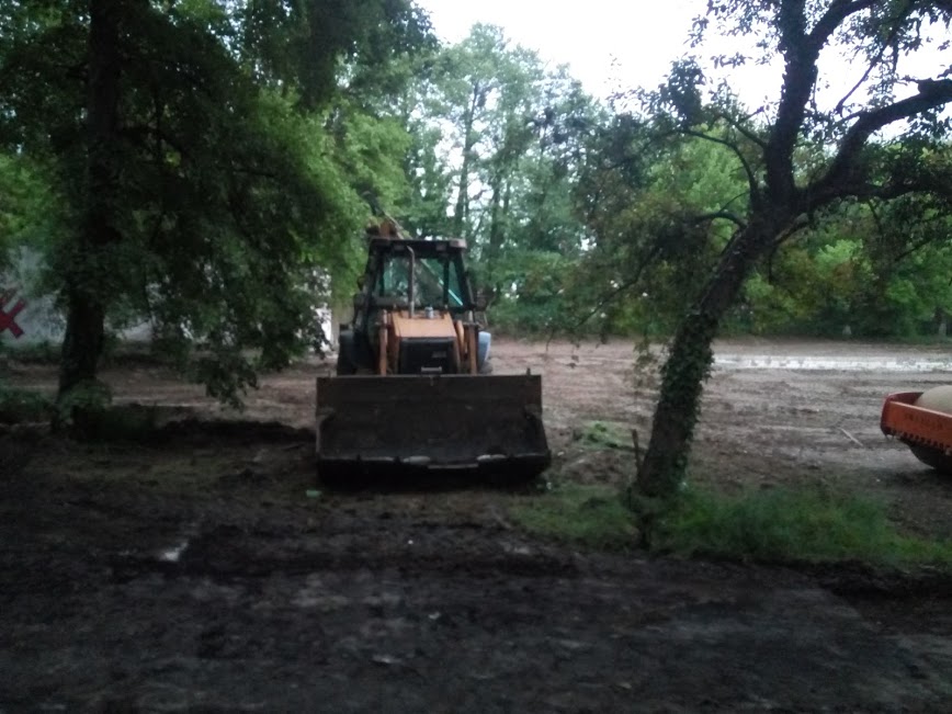 Întregul teren a fost curățat parțial de buruieni și de bălăriile care s-au adunat în timp, iar muncitorii au început să lucreze de zor în timpul săptămânii.