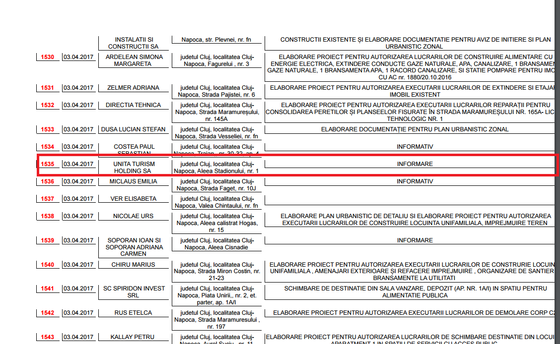 La 6 ani distanță, este interesant de precizat că Primăria Cluj-Napoca a emis totuși un certificat de urbanism pe Aleea Stadionului nr. 1 în data de 3 aprilie 2017 pentru firma Unita Turism Holding SA, fără a oferi vreo informație despre proiect, ceea ce ne face să ne gândim că tocmai Unita ar fi început în acest an lucrările pe acest teren și ar putea să își pună în aplicare planul până la urmă de a ridica respectivul centru sportiv.