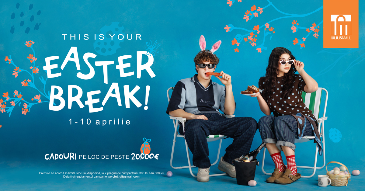 La Iulius Mall Cluj, începutul lui aprilie înseamnă mai mult decât planuri de sărbători, colecții noi sau idei de vacanță. Până pe 10 aprilie 2026, campania „THIS IS YOUR EASTER BREAK!” transformă sesiunile de shopping într-o experiență completă, cu premii instant la branduri îndrăgite. Și nu uita: cu cât iei mai multe cadouri, cu atât surprizele pentru tine sunt mai mari!