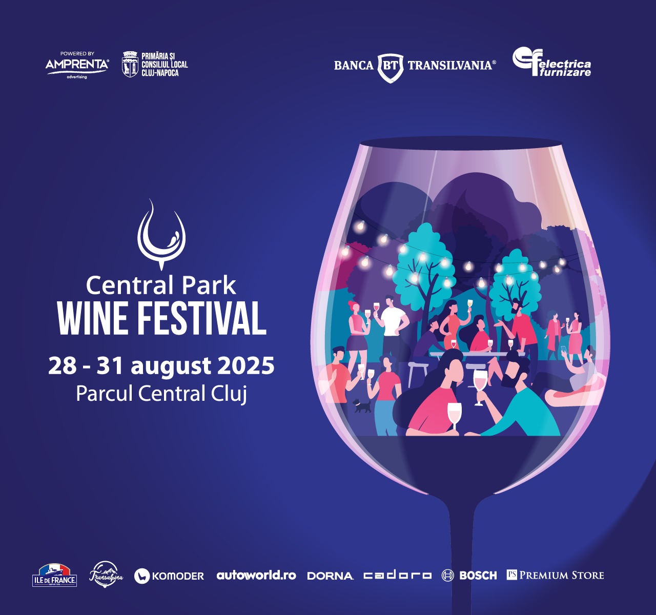 Central Park Wine Festival are loc în perioada 28 – 31 august 2025 în Parcul Central „Simion Bărnuțiu” din Cluj-Napoca, iar accesul este deschis pentru publicul larg.