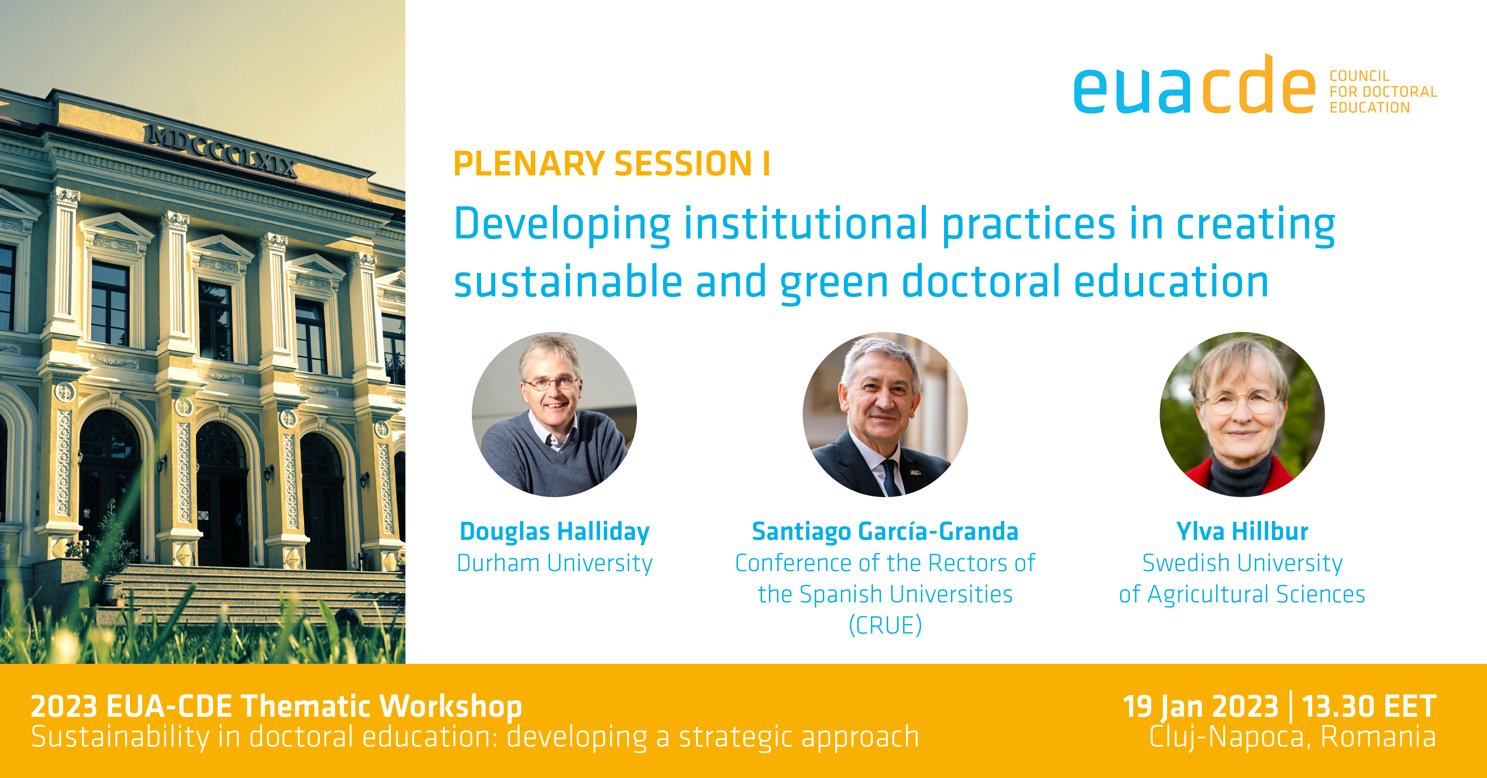 Universitatea de Științe Agricole și Medicină Veterinară (USAMV) Cluj-Napoca găzduiește, în 19-20 ianuarie 2023, un eveniment din calendarul Asociației Universitare Europene – Consiliul pentru Educație Doctorală (EUA – CDE), cu participarea a peste 70 de specialiști din numeroase instituții de învățământ superior, membre EUA – CDE.