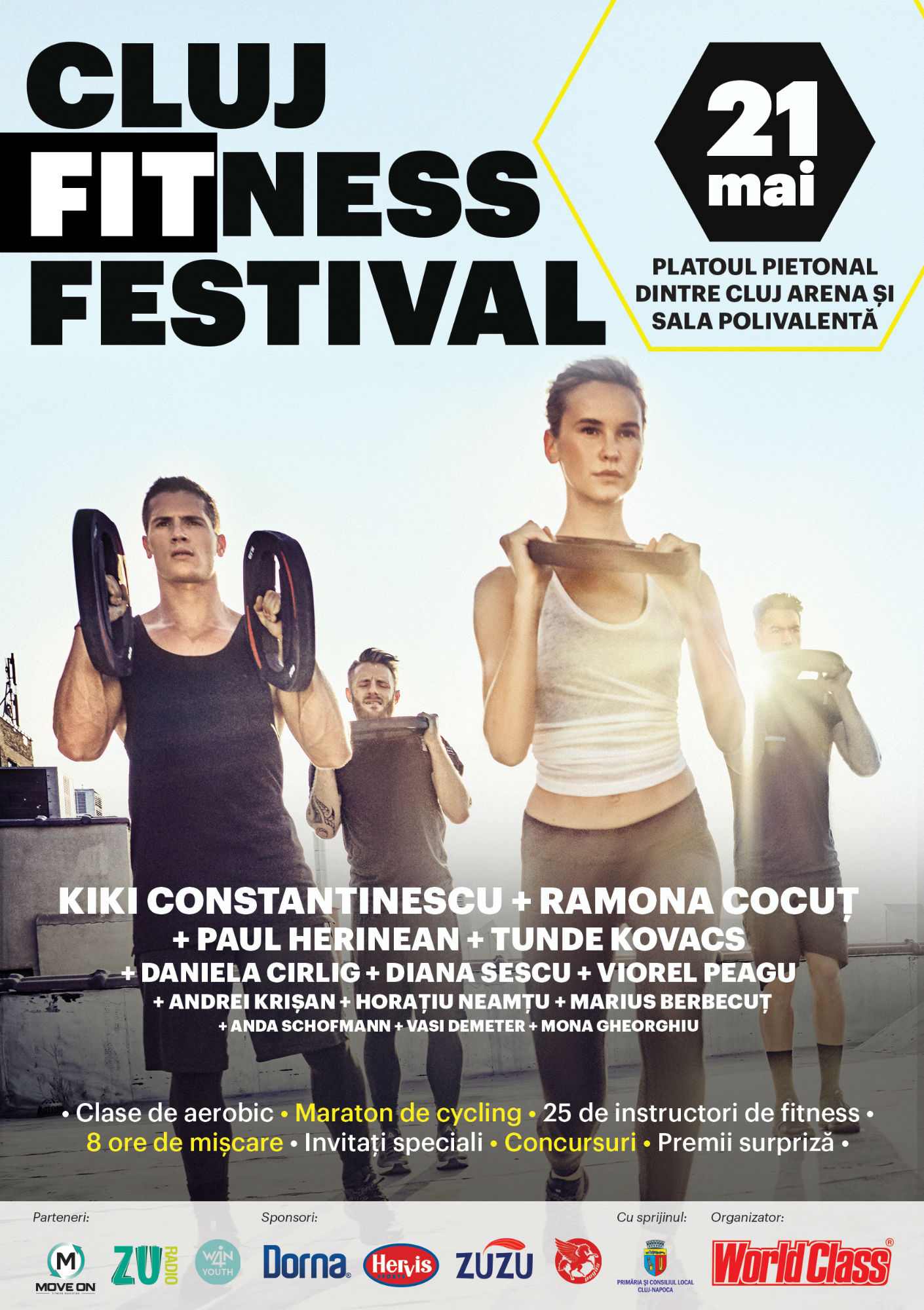 Pe 21 mai, pregătește-te să iei parte la cel mai tare fitness show în aer liber, marca World Class România! Cluj Fitness Festival, ediția a doua, te întâmpină cu cei mai cool instructori ai momentului, cele mai noi concepte de fitness, concursuri și premii-surpriză!